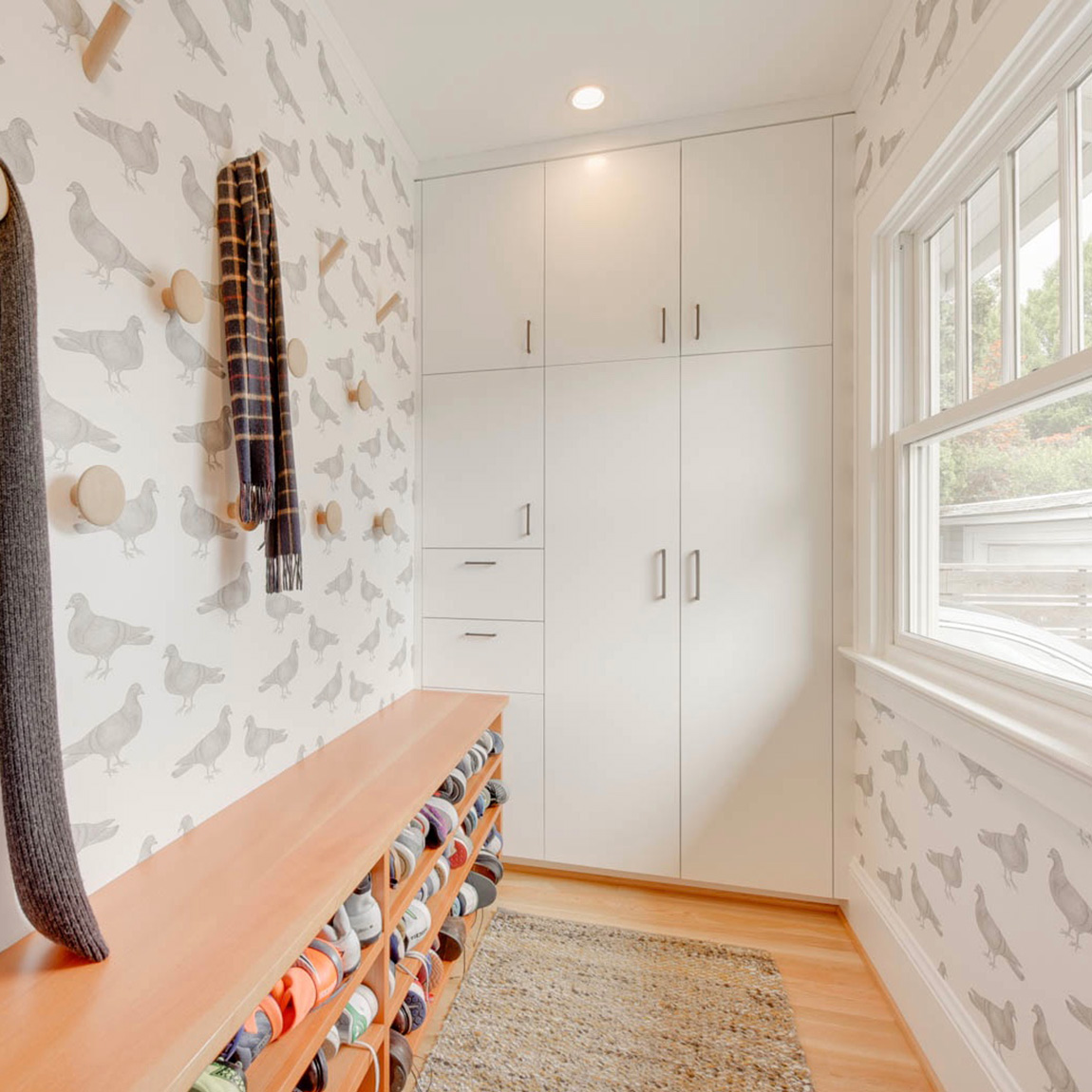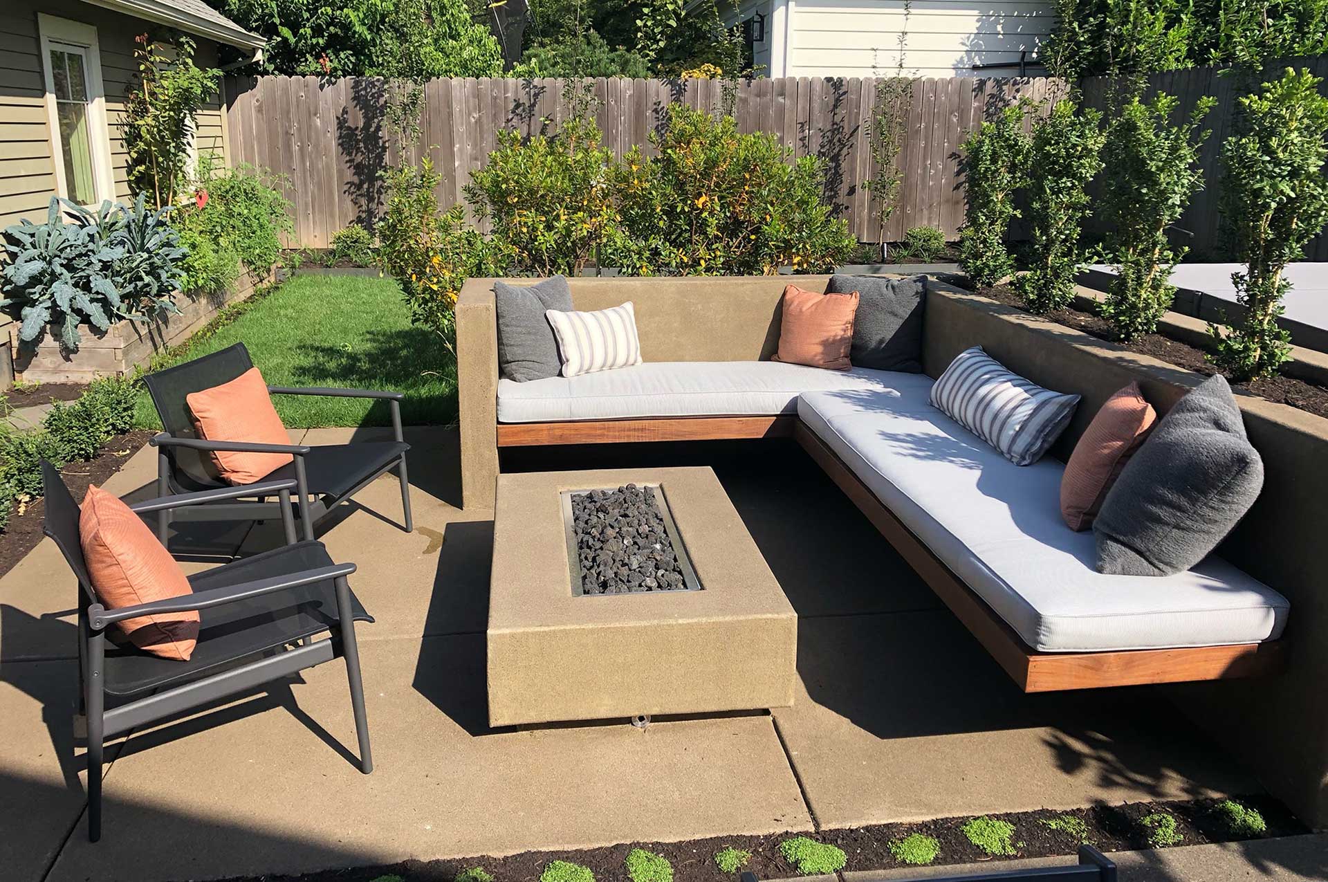 This project created a unique new kitchen in a 1920’s era Portland home. The owner’s vision of modern kitchen that was compatible with the older parts of the house was realized with concrete counters, grooved white cabinets, and a custom stainless hood surround. The kitchen is now more open to the dining room and has an expansive new view of the back yard. A new desk was also developed adjacent to the kitchen to house the family computer, cookbooks, files, as well as kids’ homework slots. In conjunction with the new kitchen, the back yard was reimagined with built-in concrete seating, fire pit, hot tub and outdoor shower.